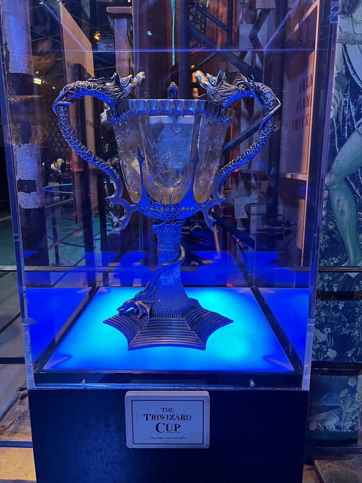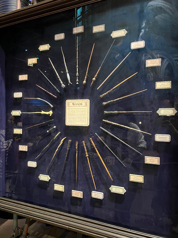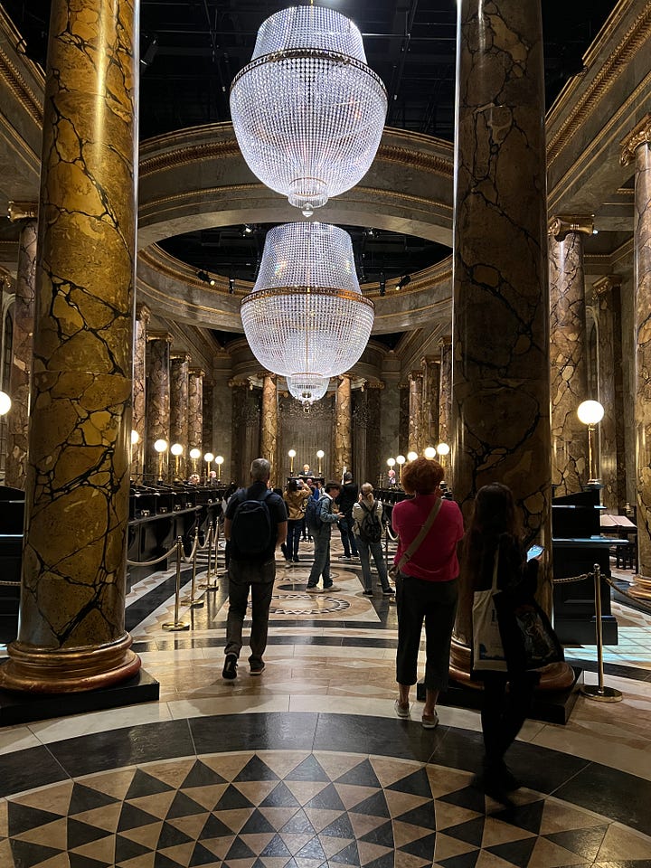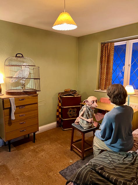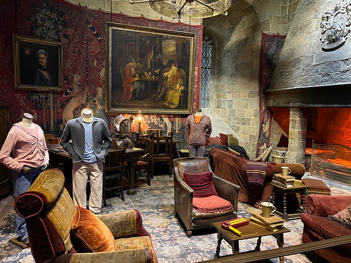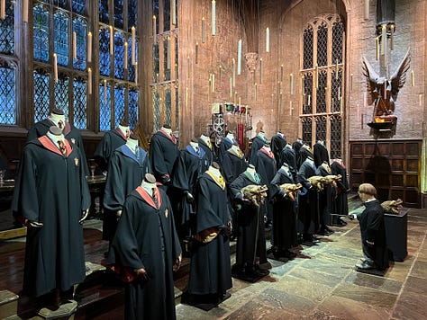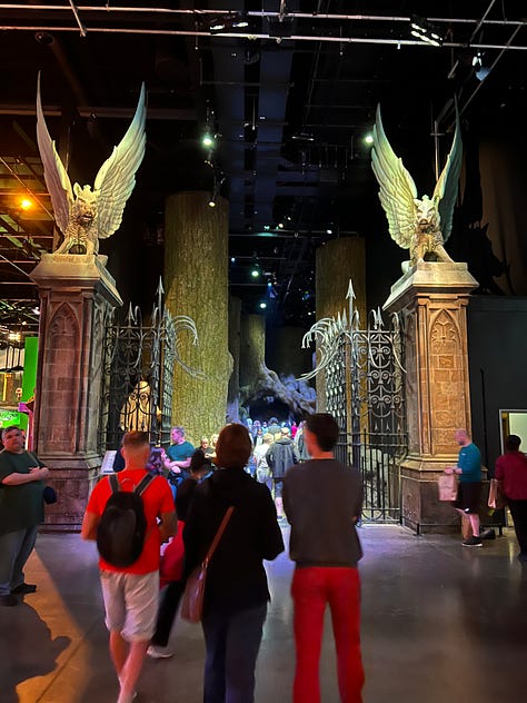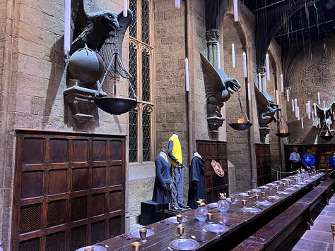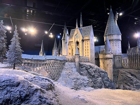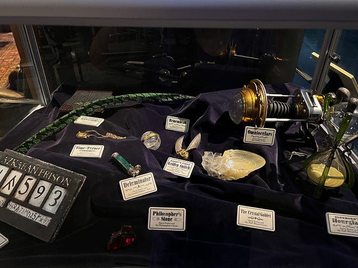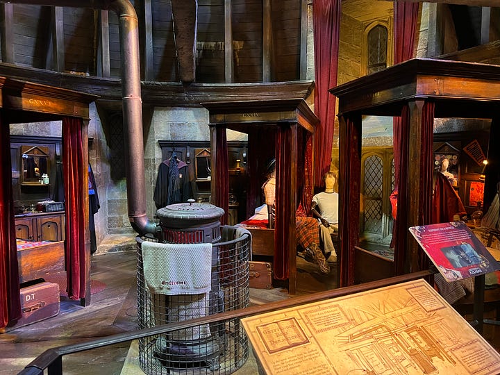 Magical London PhotosHarry Potter StudiosHarry Potter Studio entrance with Wizards’ chess piecesThe door to the Great HallInside the Great HallCostumes and props from the Yule Ball (Note: Hermonie’s dress is left front!)Griffyndor common room | Harry and Ron's bedroomDumbledore’s office featuring Fawkes, the phoenixSnape’s Potions classroomVarious props (including a snitch) | Collection of magic wands Triwizard's Cup from Goblet of Fire | Quidditch broomsEntrance to the Forbidden Forest | Buckbeak | Aragon the spiderJen at the “real” Platform 9 3/4 The cupboard under the stairs | Harry finally gets his Hogwarts letter | Dobby visits HarryInside the Knight Bus | The Mandrake greenhouse | The Covered Bridge from HogwartsInside Gringotts BankThe Gringotts VaultDiagon AlleyThe Hogwarts Castle modelTea Time at The Ampersand HotelAre you ready for the science?!
