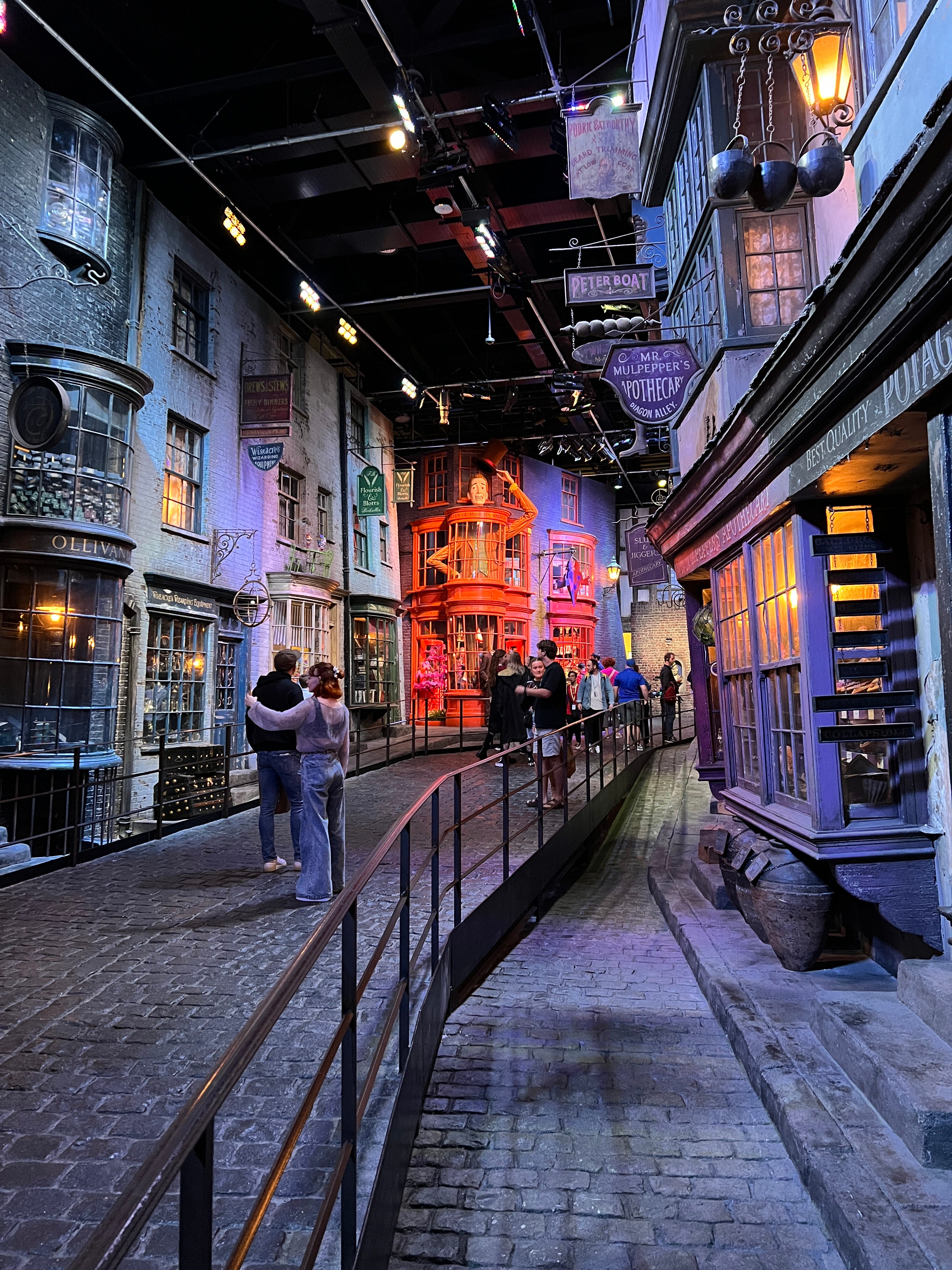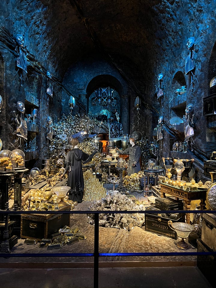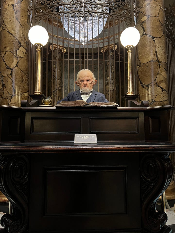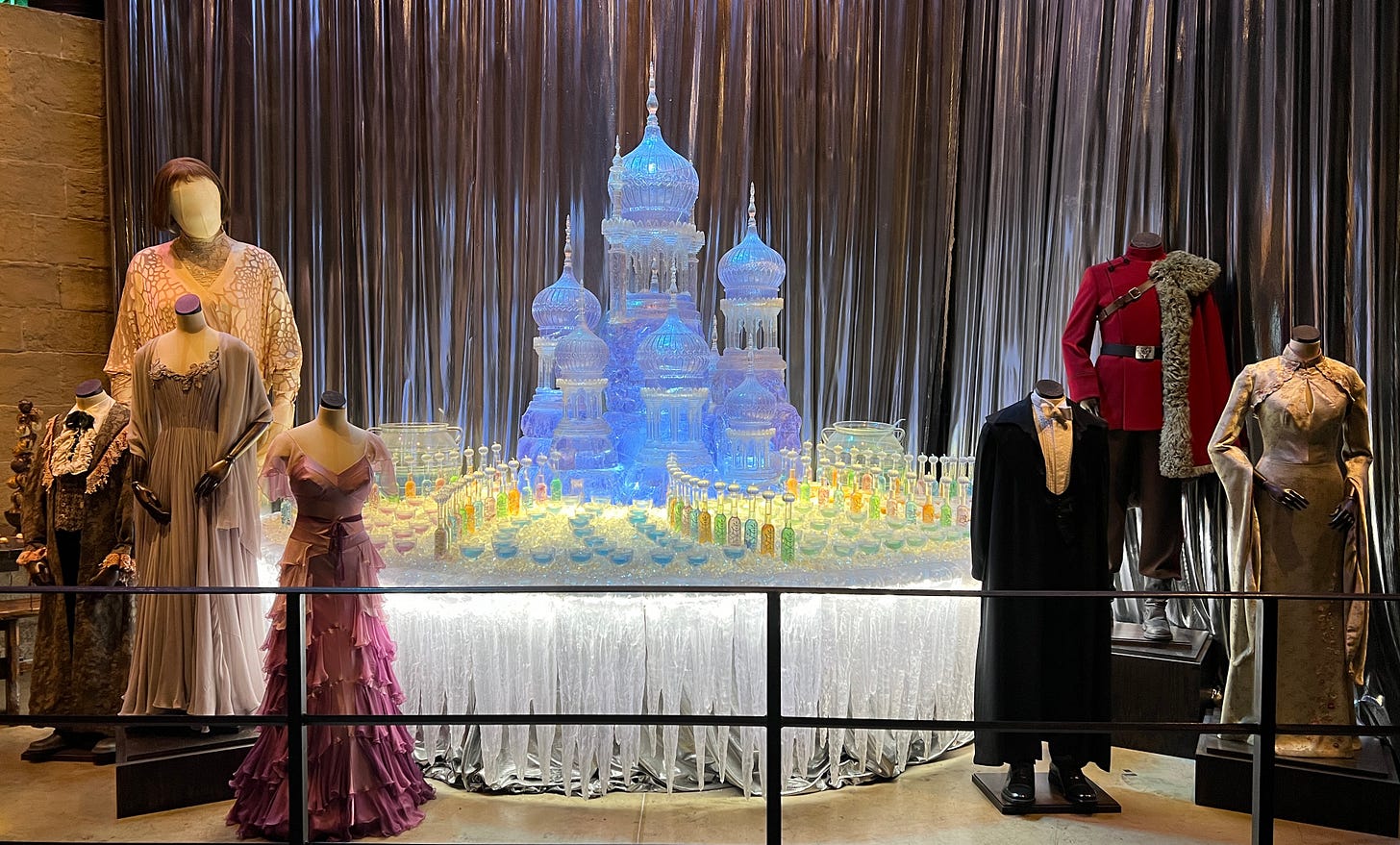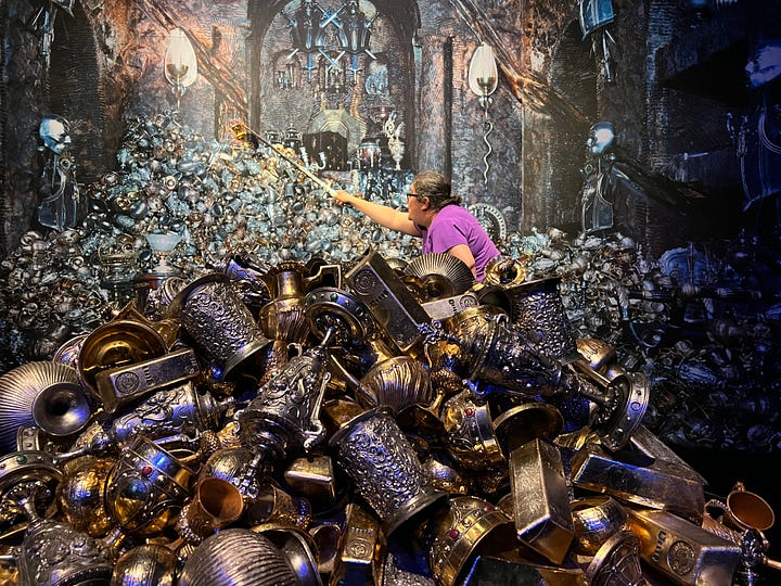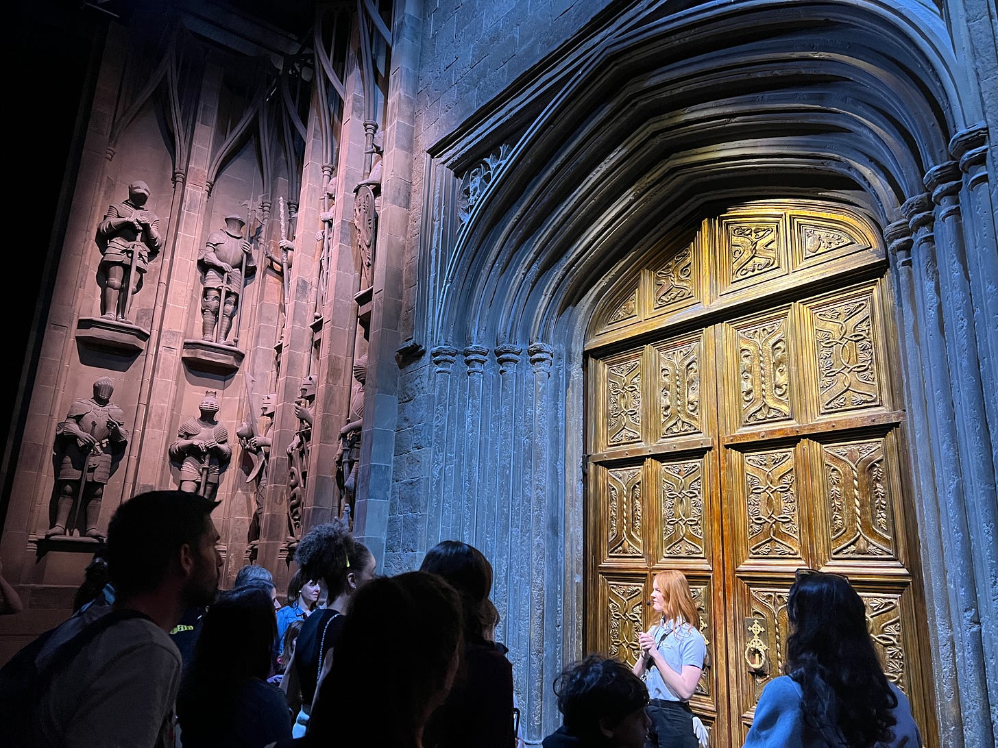 Magical London PhotosHarry Potter StudiosHarry Potter Studio entrance with Wizards’ chess piecesThe door to the Great HallInside the Great HallCostumes and props from the Yule Ball (Note: Hermonie’s dress is left front!)Griffyndor common room | Harry and Ron's bedroomDumbledore’s office featuring Fawkes, the phoenixSnape’s Potions classroomVarious props (including a snitch) | Collection of magic wands Triwizard's Cup from Goblet of Fire | Quidditch broomsEntrance to the Forbidden Forest | Buckbeak | Aragon the spiderJen at the “real” Platform 9 3/4 The cupboard under the stairs | Harry finally gets his Hogwarts letter | Dobby visits HarryInside the Knight Bus | The Mandrake greenhouse | The Covered Bridge from HogwartsInside Gringotts BankThe Gringotts VaultDiagon AlleyThe Hogwarts Castle modelTea Time at The Ampersand HotelAre you ready for the science?!