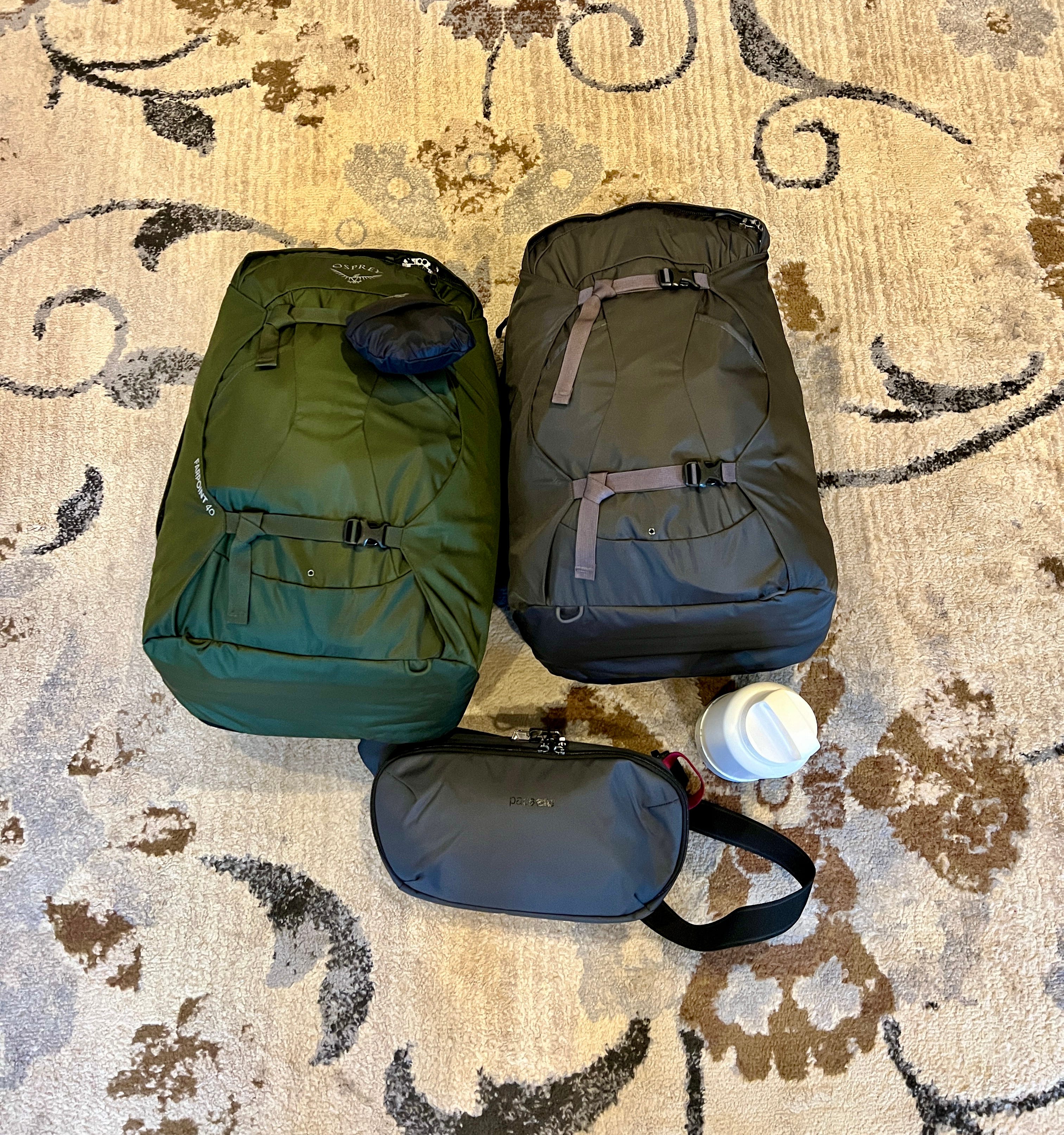 After narrowing down our list to a few options, we were able to try them all on at REI before selecting one. Ultimately we opted for the Osprey Farpoint 40-liter backpack. It was, by far, the most comfortable of all the packs and had several features that we appreciated. One of its most important attributes is that it fits the dimensions for a carry-on bag, allowing the packs to stay with us at all times instead of checking it when we fly or travel by train. The packs also have waist and sternum straps which help disperse the weight instead of it resting solely on your shoulders. So, yes, it’s literally a weight off of your shoulders! Lastly, there is a stowaway harness on the back of the pack which is a “pocket” that holds the folded up shoulder and waist straps. When zipped up, the backside of the bag is flat and it makes going through security lines and stowing in overhead bins much easier!